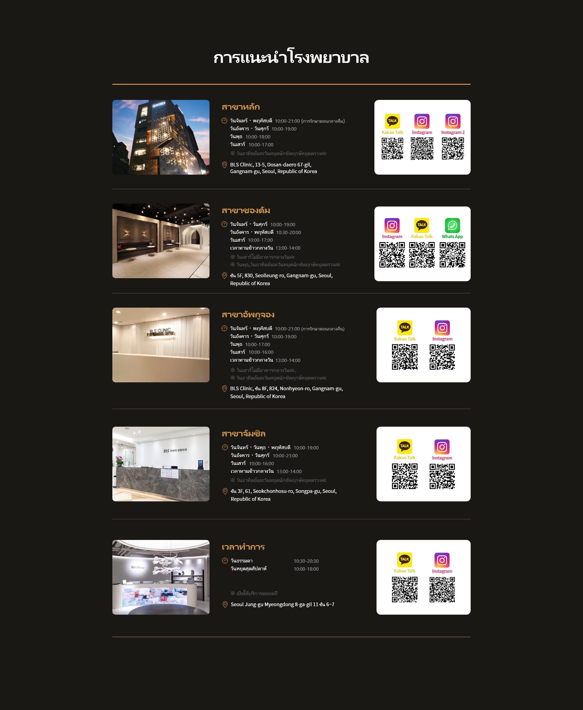 ※ หากคุณมีการปรึกษาหารือกับเจ้าหน้าที่ทางการแพทย์อย่างเดียวจะมีการคิดค่าธรรมเนียมการให้คำปรึกษาแยกต่างหาก (หากคุณเข้ารับการรักษาในวันนั้นจะไม่มีการเรียกเก็บค่าธรรมเนียมการให้คำปรึกษา)